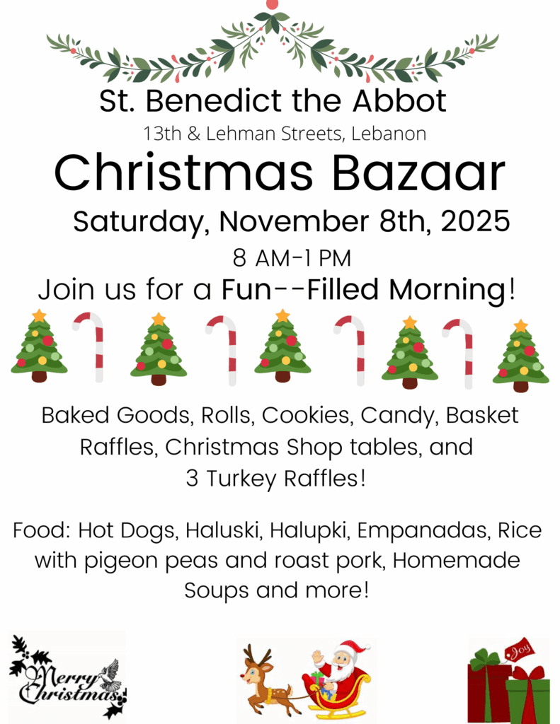 La iglesia de San Benito Abad necesita urgentemente su ayuda. ¿Usted o alguien que conoce tiene un gran negocio en la ciudad que debería estar en el boletín? Si es así, comuníquese con Lisa Sparkman al 717-507-3766 o Isparkman@diocesan.com para reservar espacio en el nuevo boletín de colores.