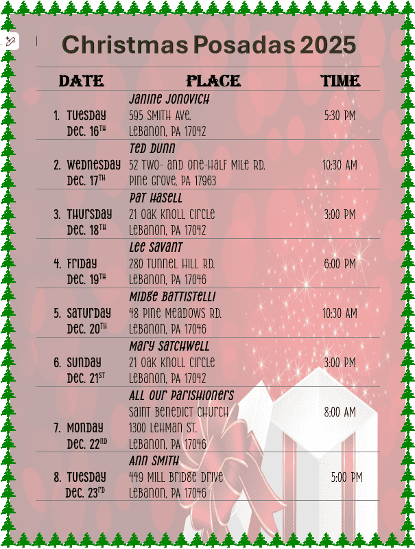 Saint Benedict the Abbot church need urgently your help, Do you or someone you know have a great business in town that should be on the bulletin? If so Please contact Lisa Sparkman at 717-507-3766 or Isparkman@diocesan.com to reserve space on the new color bulletin.